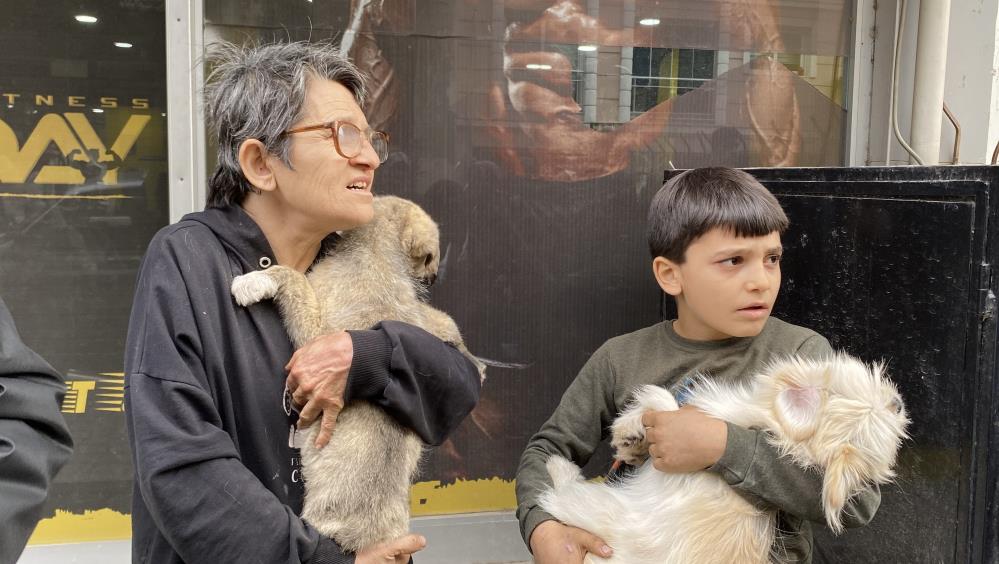 3 köpeği ve oğlu ile sokakta kalan kadın gözyaşlarına boğuldu