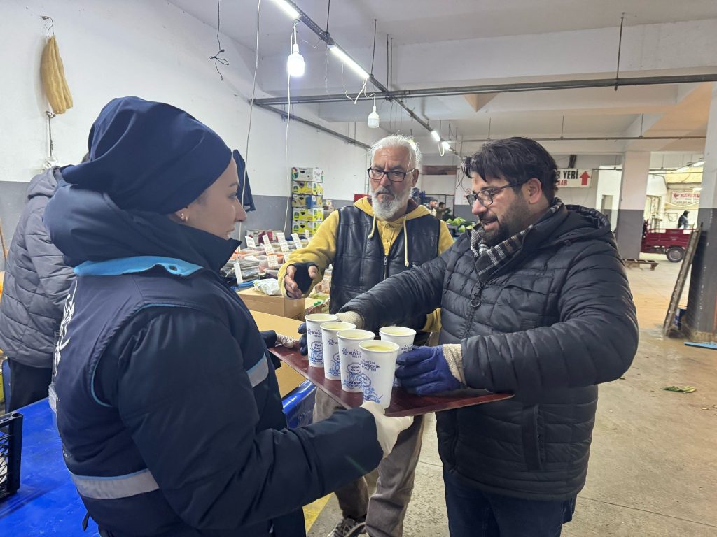 Hava sıcaklıklarının düşmesi ile birlikte harekete geçen Büyükşehir Belediyesi, her yıl olduğu gibi bu yıl da çorba ikramıyla vatandaşların ve pazarcı esnaflarının içini ısıtıyor. Sabahın erken saatlerinde gerçekleştirilen ikramlar, soğuk havalarda vatandaşların ve pazarcı esnaflarının içini ısıtıyor, yüzleri güldürüyor.