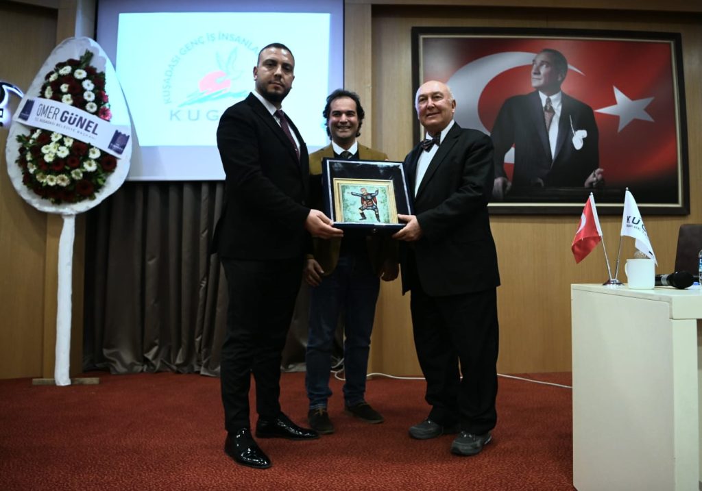 Kuşadası Genç İş İnsanları Derneği tarafından (KUGİAD) Kuşadası Belediyesi ve Kuşadası Ticaret Odası’nın (KUTO) katkılarıyla düzenlenen konferansa ilgi yoğun oldu. KUTO Konferans Salonu’nda gerçekleştirilen etkinliğe Kuşadası Kaymakamı İbrahim Keklik, Kuşadası Belediye Başkan Vekili Efe Berberoğlu, CHP Kuşadası İlçe Örgütü Başkanı Mehmet Gürbilek, KUGİAD Başkanı Haşmet Boğalı, siyasi partilerin temsilcileri ve çok sayıda sivil toplum kuruluşu katıldı.