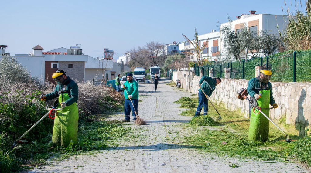 Kuşadası Belediyesi ekipleri tarafından yürütülen detaylı çalışmaların son adresi Kadınlar Denizi Mahallesi oldu. 584 Sokak’la başlayan çalışma kapsamında yollar süpürülüp yıkanırken, çöp konteynerleri ve sepetleri ile park ve yeşil alanlarda bulunan oturma ve oyun grupları özel solüsyonlarla dezenfekte edildi. Yol kenarlarında oluşan yabani otları biçen ekipler, gerekli ağaç budamalarını da gerçekleştirdi. Kuşadası Belediyesi’nin özenli çalışmalarını memnuniyetle karşılayan mahalle sakinleri Başkan Ömer Günel’e teşekkür etti.